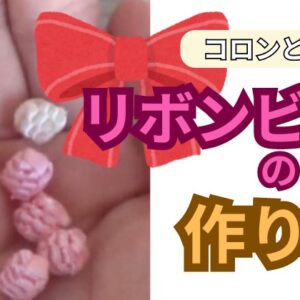 リボンを編むとき真ん中がうまく押さえられなくて1段目がなかなか編めないよ~