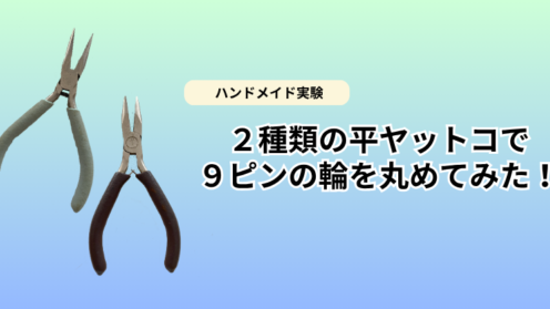 ハウツー 2種類の平ヤットコで9ピンを丸めてみた【ハンドメイド】 9ピンなどの輪を作る際に使うことが多いのは丸ヤットコですが、丸カンなどの開閉で大活躍する平ヤットコでも綺麗な輪を作ることはできるのか?試してみました(^^)/ 2025.10.23 ハウツーハンドメイド