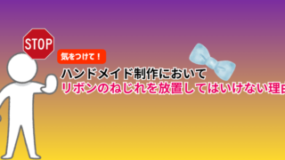 ※編んでいる最中は、リボンの真ん中から手を離さないでください!