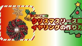 先ほど左斜め上に持ってきたリボンの上を通りながら輪っかに通していく。