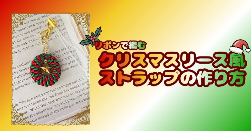 今回の記事は、リボンで編むクリスマスリース風ストラップの作り方になります~!