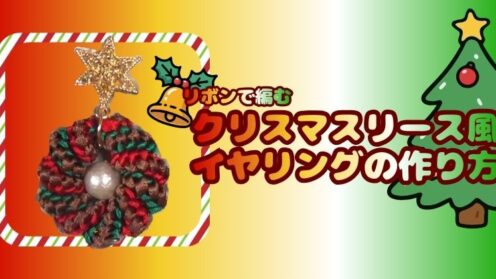 アクセサリーの作り方 【3本のリボンで編む】クリスマスリース風イヤリングの作り方【ハンドメイド】